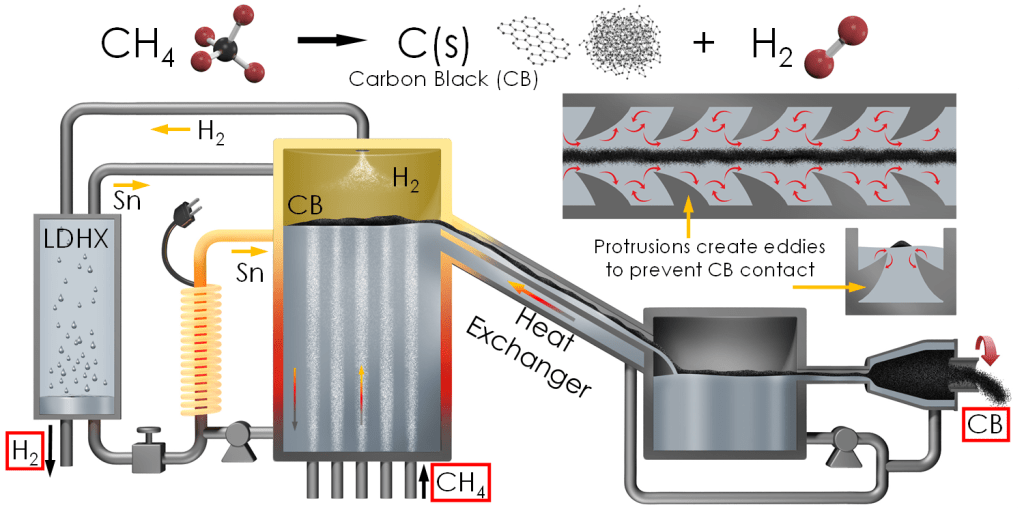 Ph.D. research on reactor that converts methane into solid carbon and hydrogen, focusing on separation systems